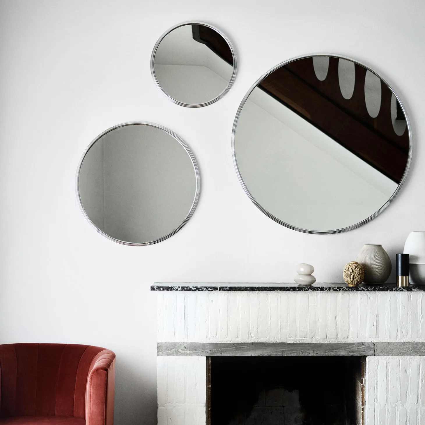 Sillon SH5 vægspejl i krom fra &Tradition. Farve: krom. Mål: Ø 66 cm. Design: Sebastian Herkner.