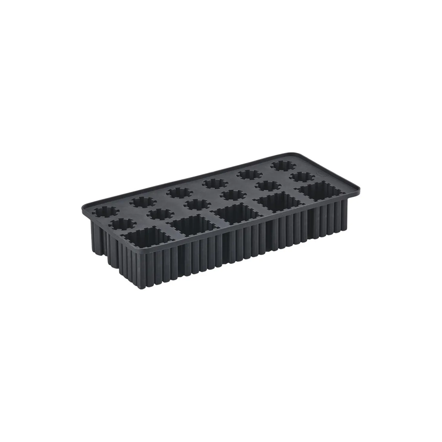 Med Singles isterningebakken kan du imponere med drinks, der ikke bare er vidunderligt kolde, men også uimodståeligt smukke. Isterningerne har et stilrent art deco-udtryk, der får drinken til at stå skarpt og indbydende. Bakken er udført i silikone, der sikrer, at isterningerne let glider ud. Takket være den diskrete kant er bakkerne nemme at stable stabilt i fryseren. En god gaveide til cocktail-connaisseuren, livsnyderen og alle andre, der elsker kolde forfriskninger.