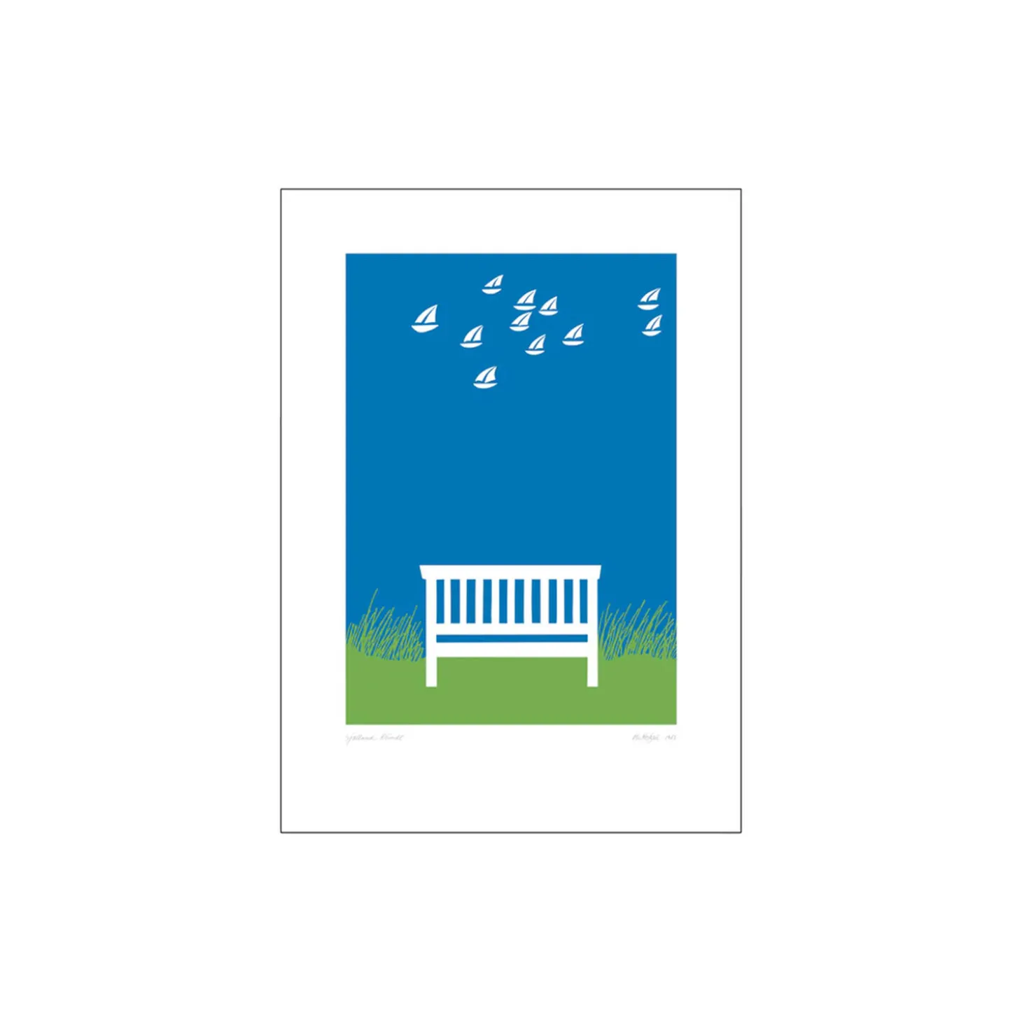 Kunstplakaten er en reproduktion af det originale kunstværk Sjælland rundt, som blev serigrafitrykt i 1982. Stafetløb rundt om Sjælland.