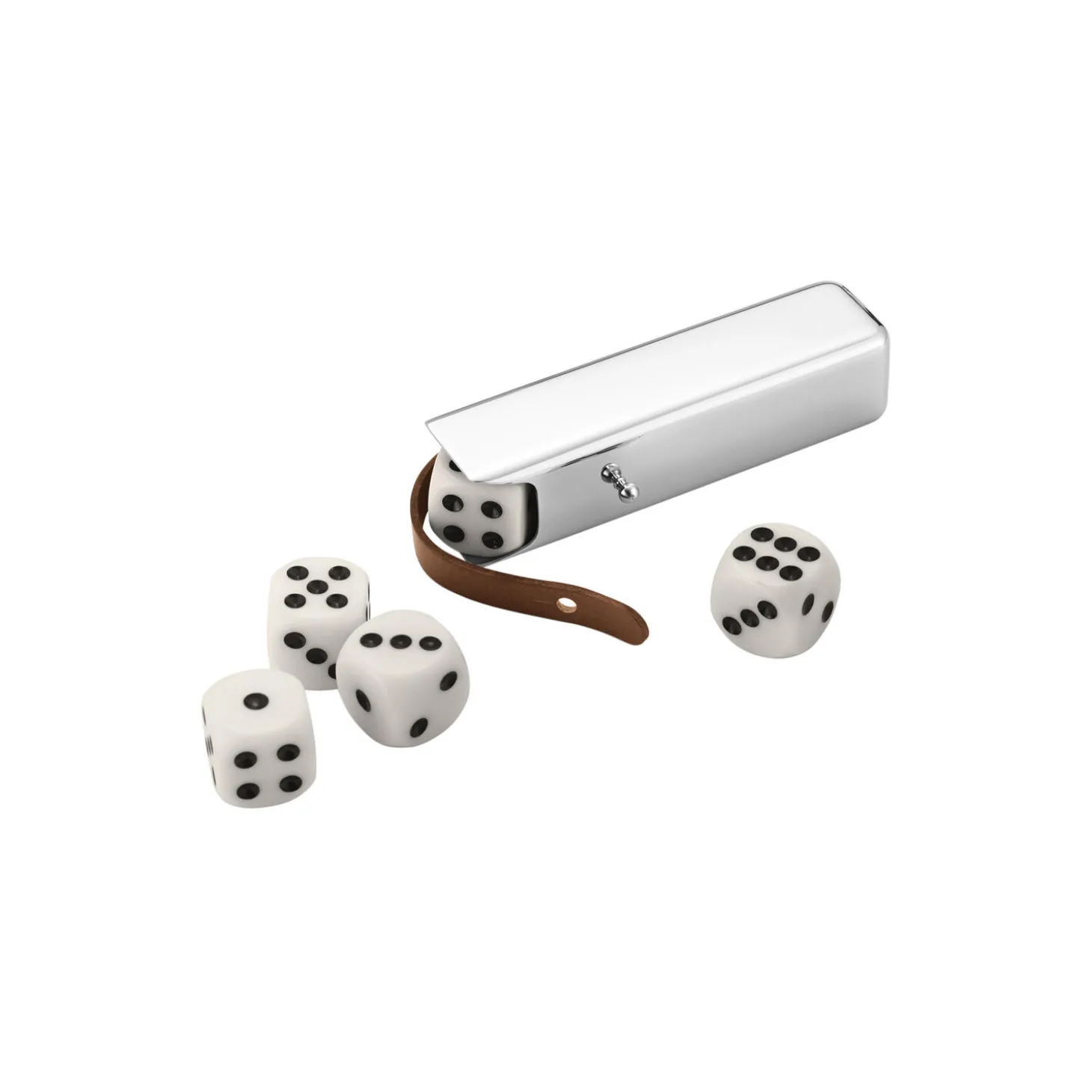 Fordriv rejsetiden eller ferieaftener på den mest stilfulde måde overhovedet med dette fem-terningesæt i rejseetui af rustfrit stål. Etuiet lukkes med en læderrem og kan indgraveres, så den er perfekt som en personlig gave til ham eller hende, der har alt!