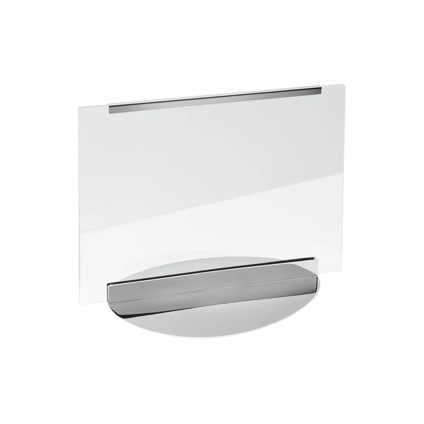 Med sin elegante minimalisme og sine rene linjer tilfører denne store billedramme et strejf af skandinavisk raffinement til ethvert skrivebord eller enhver hylde. Fotoet får lov til at tale for sig selv, da det ser ud til at svæve i luften over basen i rustfrit stål. Alsidighed er også kernen, idet glasset kan stå både lodret og vandret, og fordi du kan vise billeder på begge sider – ideelt til et arbejdskontor.