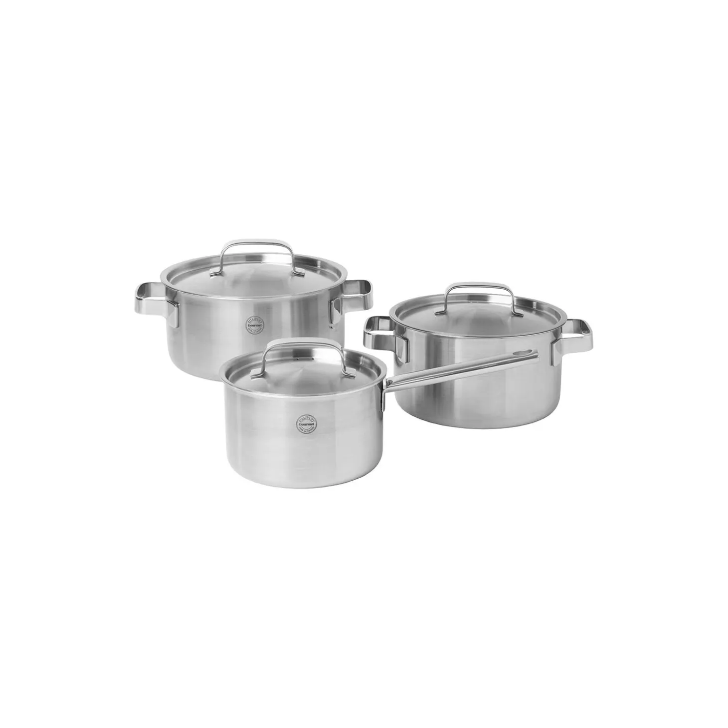 Somme grydesæt i stål med non-stick belægning fra Pillivuyt. Farve: stål. Mål: Ø 16/20/24 cm. Antal: 6 dele. Indeholder: 1,5/3/5 L.