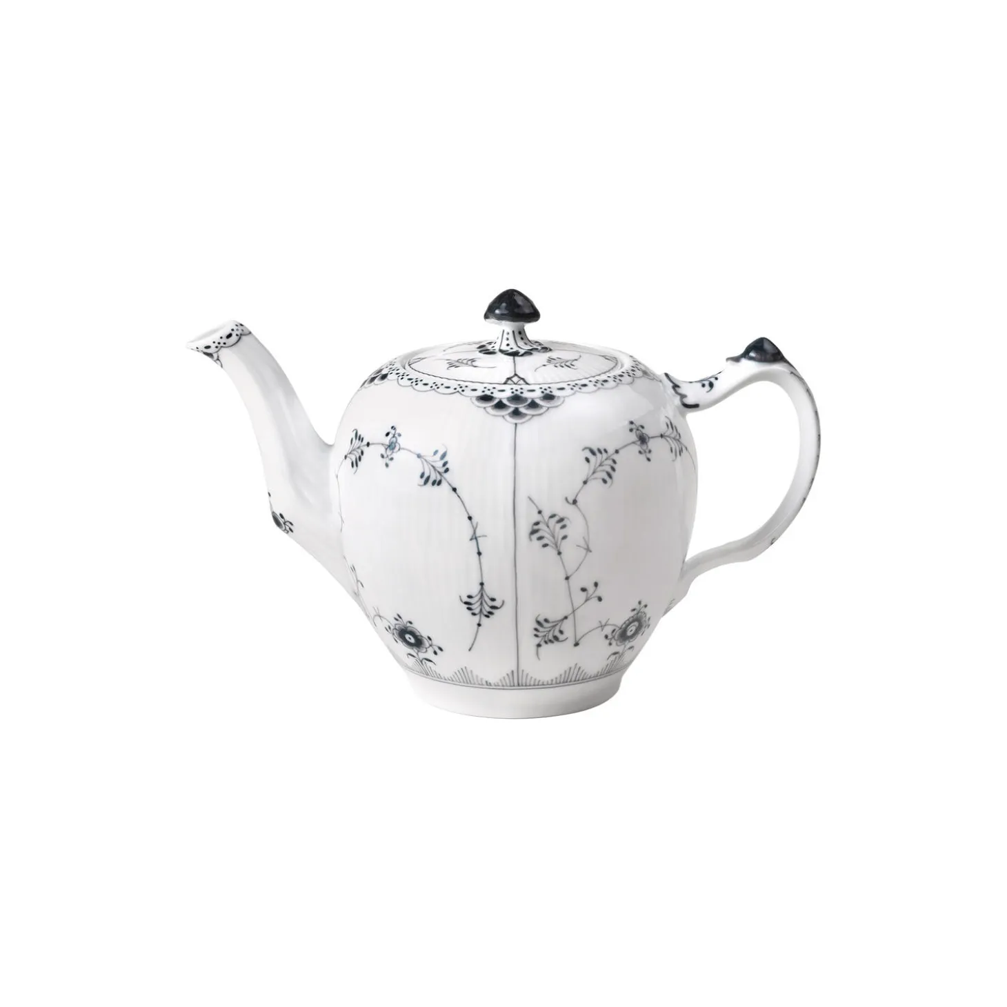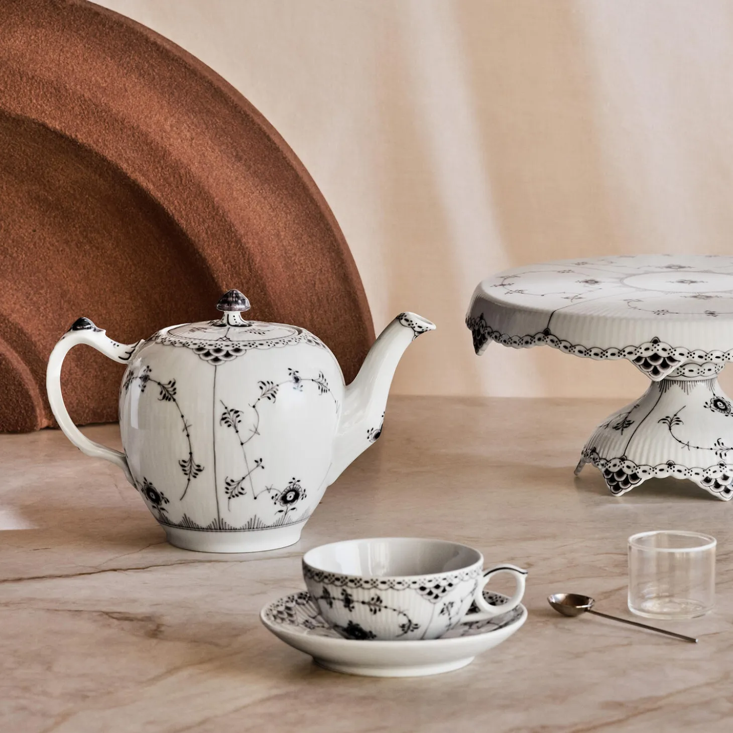 Der er skønhed at finde i mønstret af denne Sort Musselmalet Halvblonde tekande. Den sortes dristighed mod den klassiske form, gør dette til et stykke for dem, der leder efter et meget sofistikeret og elegant design. Det fine håndværk understreges af minutiøse detaljer som den lille snegl, der trænger sig hen over håndtaget.