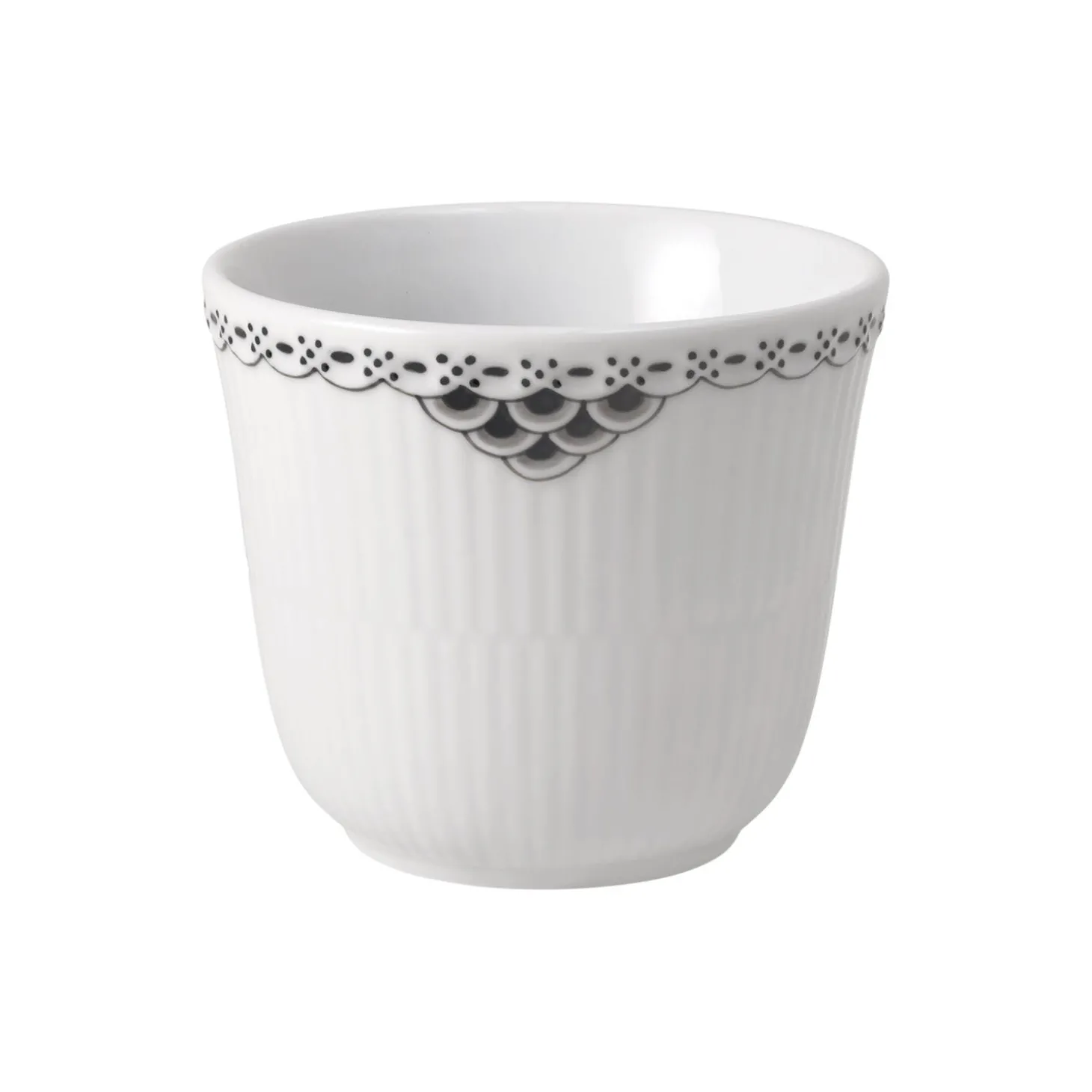 Der er intet så beroligende som at vikle hænderne omkring en varm drik, mens du nyder en stille stund for dig selv. Sort Riflet Blonde termokrus er det perfekte valg til din morgenkaffe eller eftermiddagste. Den elegante sorte blondekant bryder forsigtigt den riflede overflade en sand diskret klassiker.