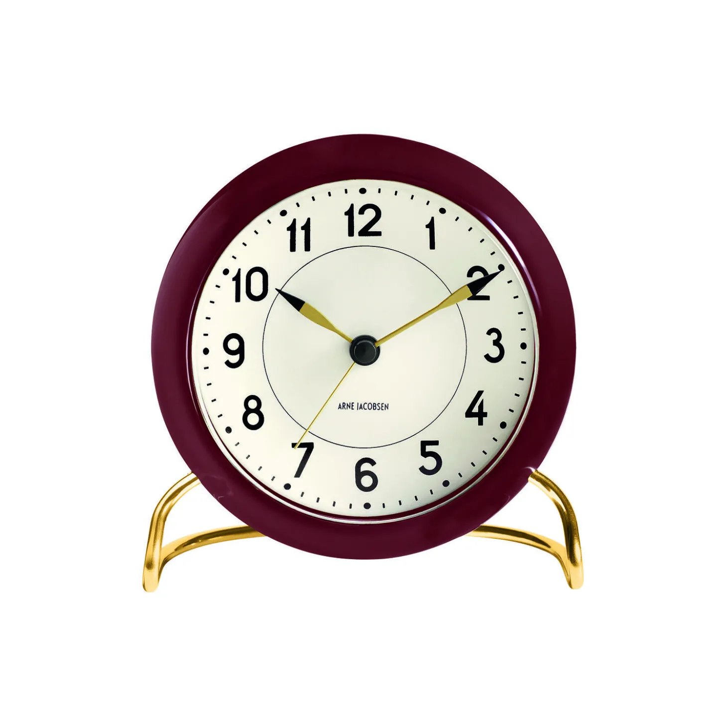 Station bord-uret kom til verden i 1939, hvor Arne Jacobsen fik til opgave at udvikle et borduret til elvarproducenten LK. Med respekt for de originale tegninger og Arne Jacobsens kompromisløse tilgang til design er bord-uret blevet opdateret med det moderne vækkeurs nødvendigheder såsom lys og snooze til alarmen. Begge dele udløses uden berøring via en usynlig sensor på toppen af uret. Denne version af uret i bordeaux og guld er typisk for tiden dengang, men også holder den dag i dag.