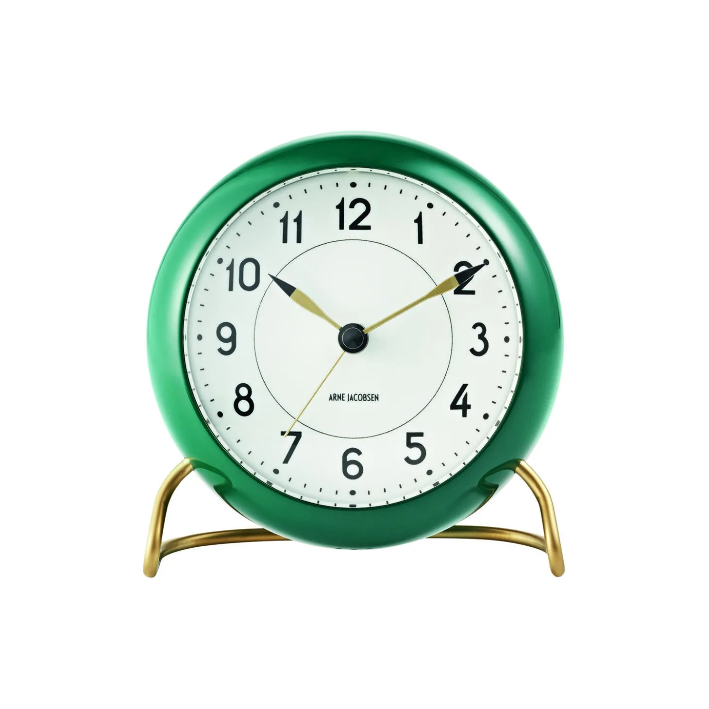 Arne Jacobsens LK bordur med sin svungne metalfod blev i 1941 opdateret, da fremstillingen af dobbeltviserne blev for dyr. Jacobsen designede i stedet Station urskiven, der med sin enkle visning af tiden fremstår nærmest Bauhaus’k i sit udtryk. Uret er nu opdateret med både alarm, snoozefunktion og lys, der udløses af en usynlig sensor på toppen af uret. Arne Jacobsens arkitektur og design vakte opsigt overalt dengang. Det magiske er, at det stadig forholder sig sådan.
