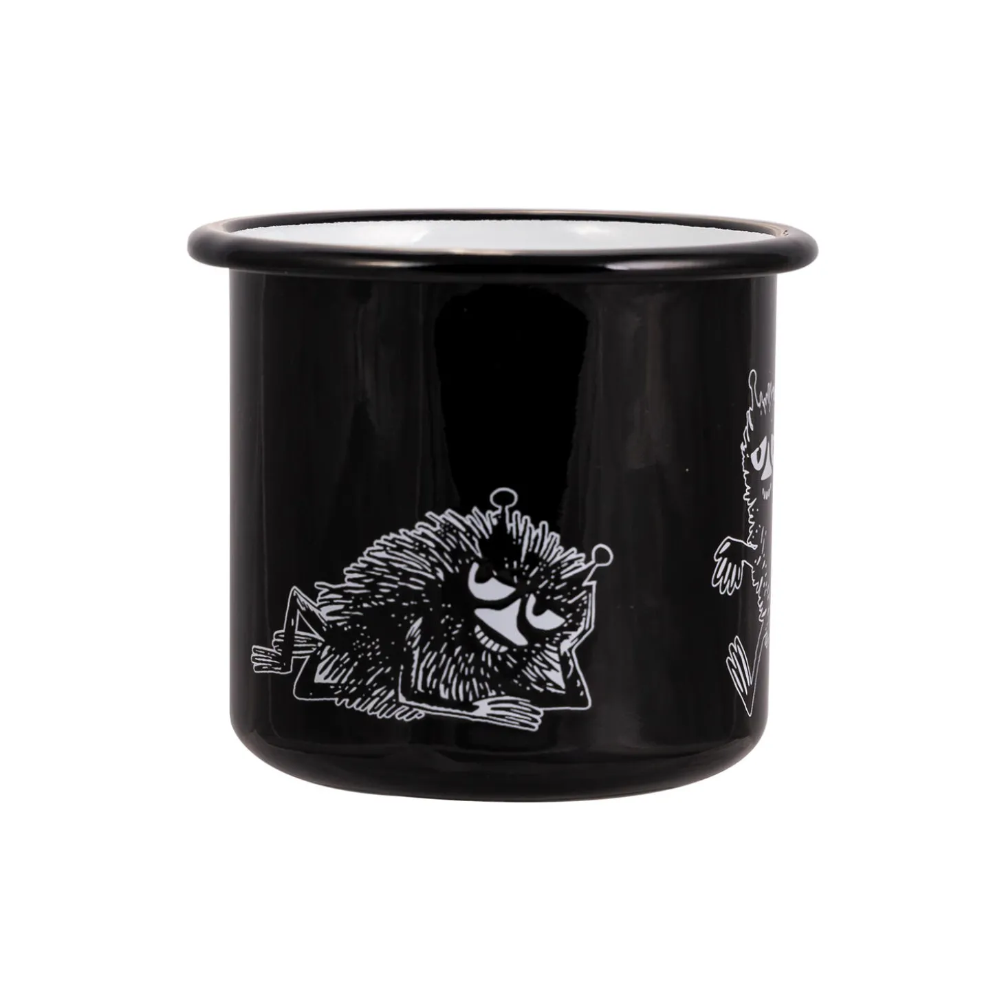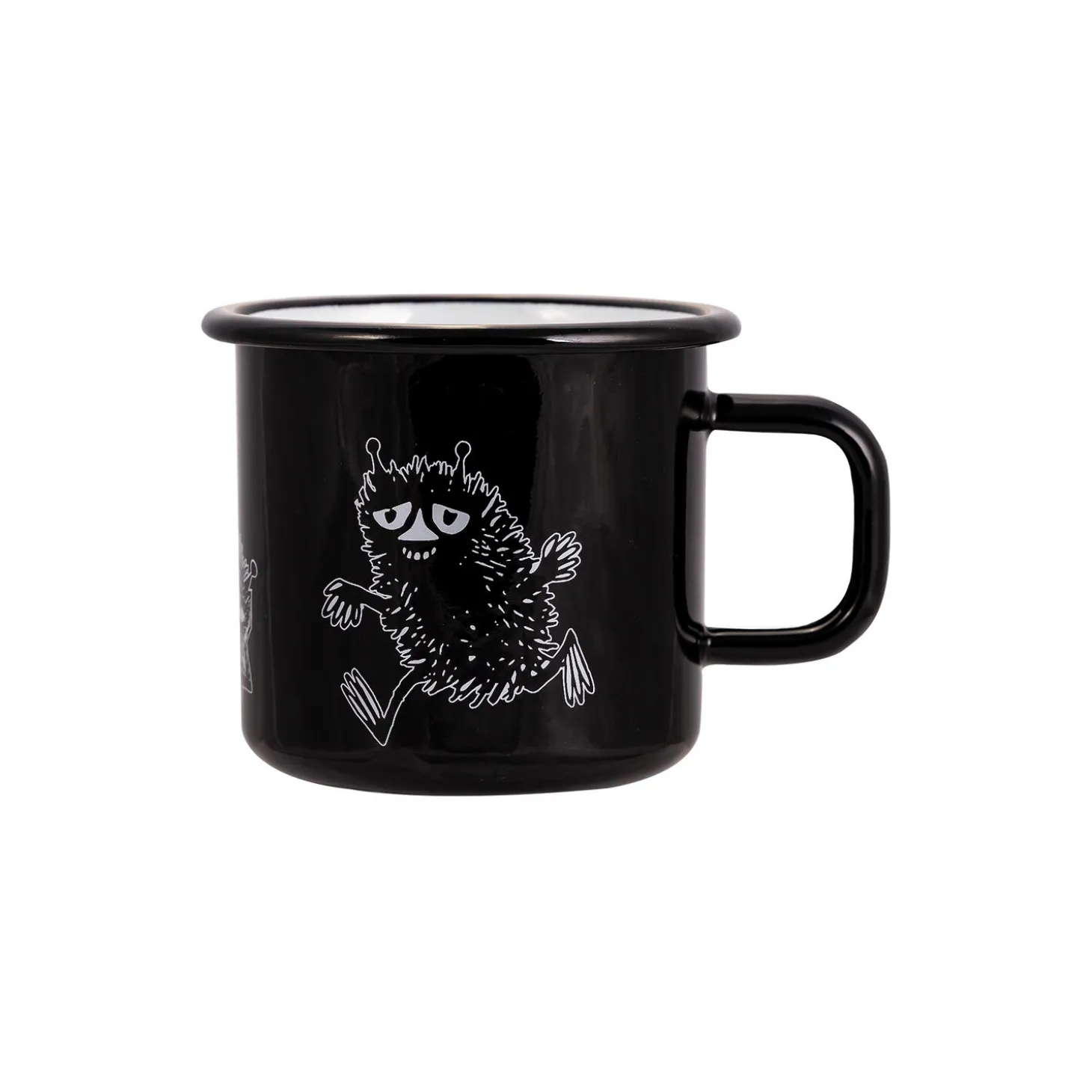 Stinky is the villain of the Moomin valley, known for his pranks and grumpy character. Stinky is seldom invited to any events due to his misbehaviour, but he shows up uninvited. The enamel mug is suitable for both hot and cold drinks. Muurla’s enamelware consists of a carbon steel core that carries a double-coating of enamel. The products are durable and light. Due to these traits the items can also be used outdoors, in addition to traditional settings. Dishwasher safe. Do not put in microwave oven.