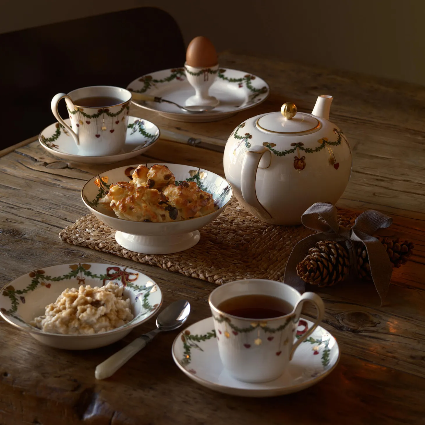 Stjerne Riflet Jul dyb tallerken i benporcelæn fra Royal Copenhagen. Den dybe tallerken i det klassiske julestel Stjerne Riflet Jul er et smukt element til julebordet. Tallerkenens guldkant er udsmykket med en granguirlande og klassisk julepynt fra juletræet. Med sine 17 cm er tallerkenen oplagt til desserter, supper og morgenmad i julemånederne.