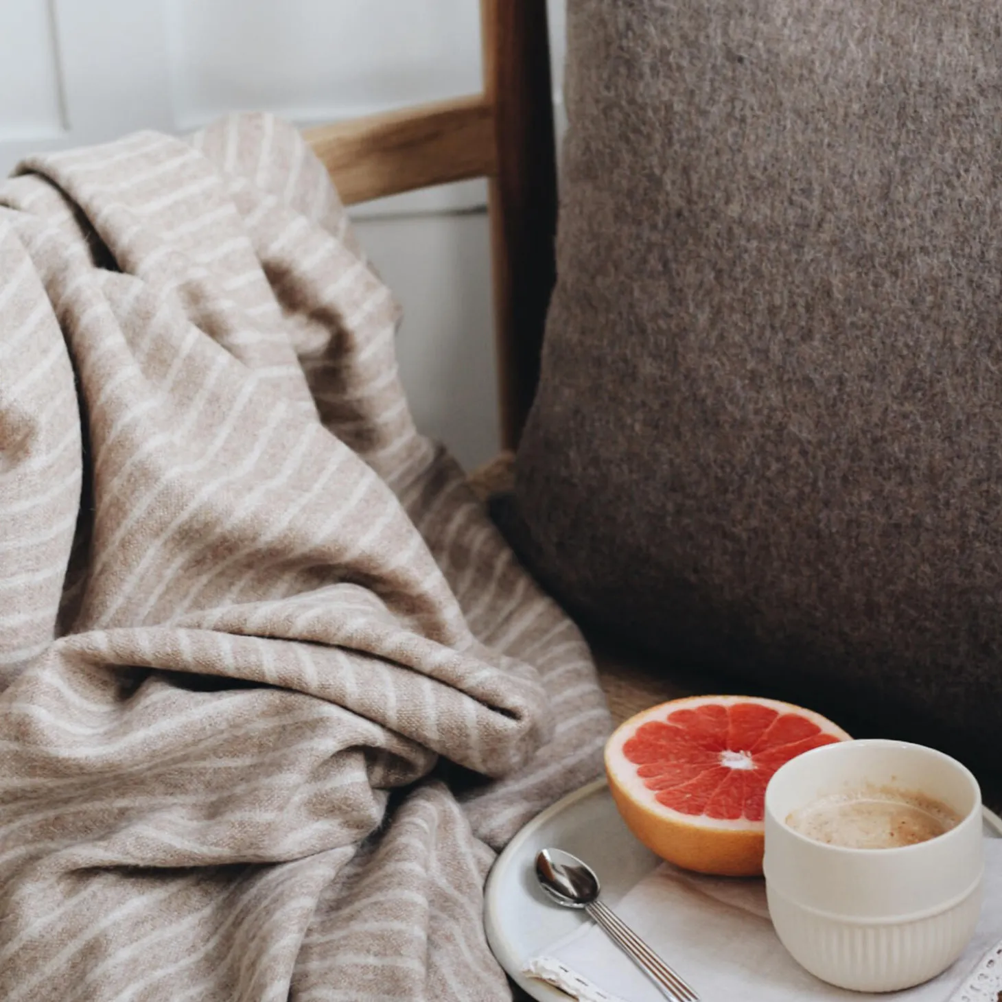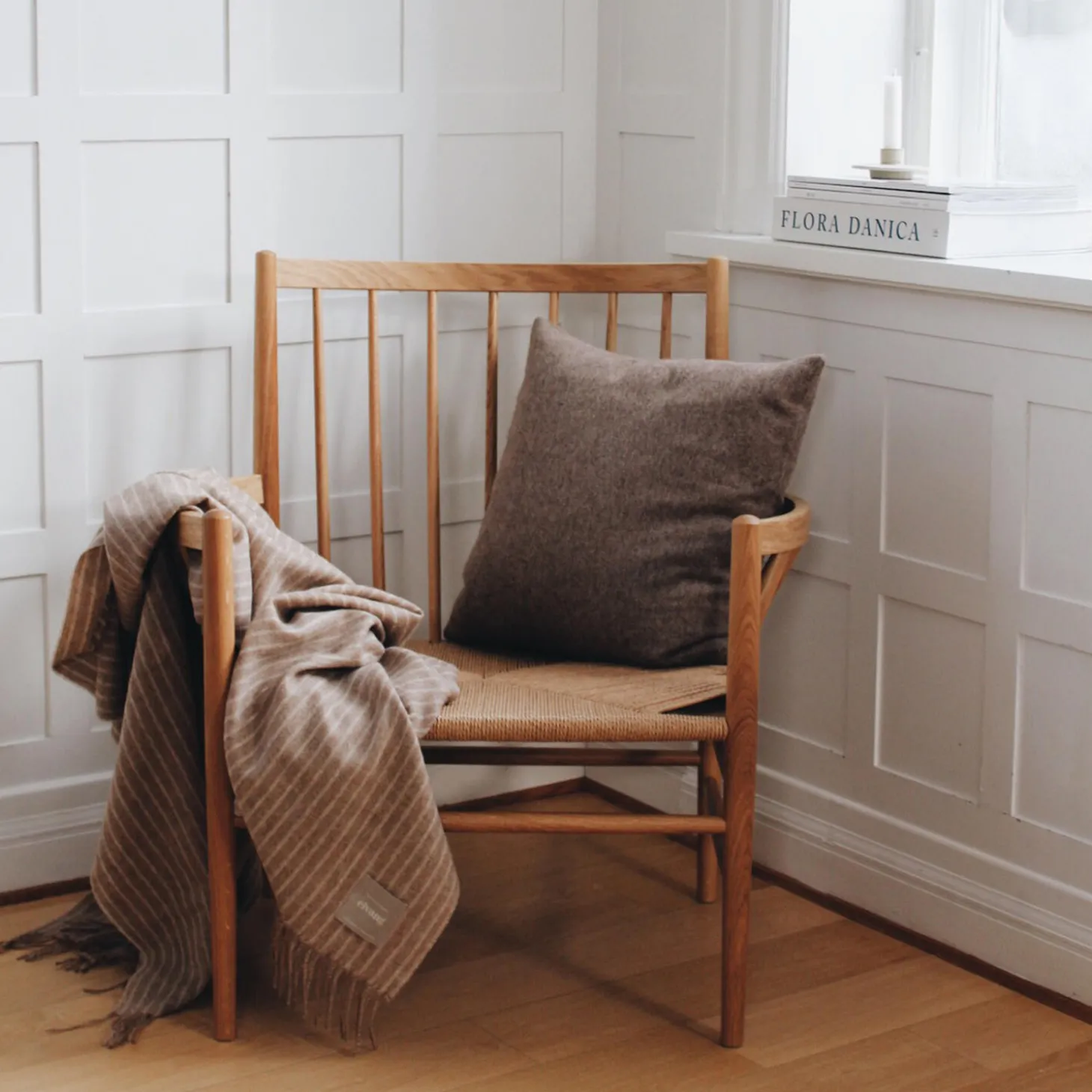Vores Stripes kollektion af plaider er ukompliceret og dynamisk med et klassisk strejf. De fine linjer samt de dekorative frynser gør Stripes til en tidløs og hjemlig ledsager. Stripes findes i fem smukke klassiske farver. En plaid der holder år efter år. Plaiden er vævet af fantastisk blød genanvendt alpaka og fåre-uld. At væve tekstiler af alpaka-uld er en tradition i Peru, der går tilbage til Inka-tiden. Alpakafibre er blødere, mere slidstærke og varmere end andre naturfibre. Plaiden fnugger minimalt og bevarer det flotte udtryk i mange år frem. I plaiden er der anvendt 100% bæredygtige fibre. Elvang er fair trade certificeret på højeste niveau hos World Fair Trade Organization (WFTO). Det er en garanti for, at plaiden er fremstillet under ordentlige vilkår både for miljø, mennesker og dyr.Materiale: 50% alpakauld, 40% fåreuld & 10% andre fiberVægt: ca. 560 gramStr.: 130×200 cmVi anbefaler rens