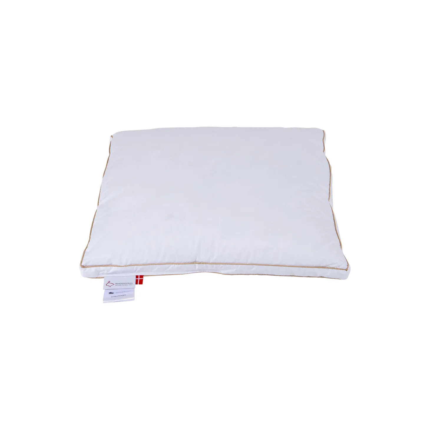Svinedrengen 3-lags hovedpude med moskusdun og småfjer fra Ringsted Dun. Farve: hvid. Mål: 60×63 cm. Fyldmængde: 620 g. Bæreevne over 11/6.