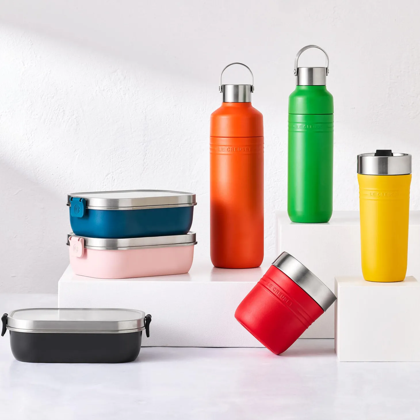Introducerer den nye On the Go-kollektion fra Le Creuset – en smart, farverig og genanvendelig serie af bærbare beholdere til mad- og drikkevarer, designet til at følge dig hvor som helst, når som helst. Den isolerede vandflaske fra Le Creuset On the Go-kollektionen er skabt med fokus på komfort og har en smal åbning i toppen for nem drikning samt en større åbning, der er perfekt til at tilføje isterninger, citron eller mynteblade. Den større åbning gør også genopfyldning og rengøring lettere. Takket være den dobbeltvæggede vakuumisolering holder dine drikkevarer sig varme eller kolde i flere timer. Den holdbare, farverige overfladebehandling er ridsefast og bevarer sit ikoniske udseende, mens den kompakte størrelse på 500 ml passer perfekt i din rygsæk. Flasken er udstyret med tætsluttende låg, der forhindrer spild, og er fremstillet i rustfrit stål, der er hygiejnisk og nemt at rengøre – din farverige ledsager. Disse genanvendelige produkter er ikke kun skånsomme mod miljøet, men kommer også i Le Creusets ikoniske farvepalet for en tidløs følelse. Gør dig klar til at bringe farver i din hverdag – uanset om du skal på picnic, vandretur eller blot pendler til arbejde. Med holdbare overfladebehandlinger, lækagesikre låg og overflader, der er lette at holde rene, tilbyder kollektionen maksimal komfort og brugervenlighed. Med On the Go kan du opleve friheden ved at have Le Creusets velkendte kvalitet med dig, uanset hvor din dag bringer dig.