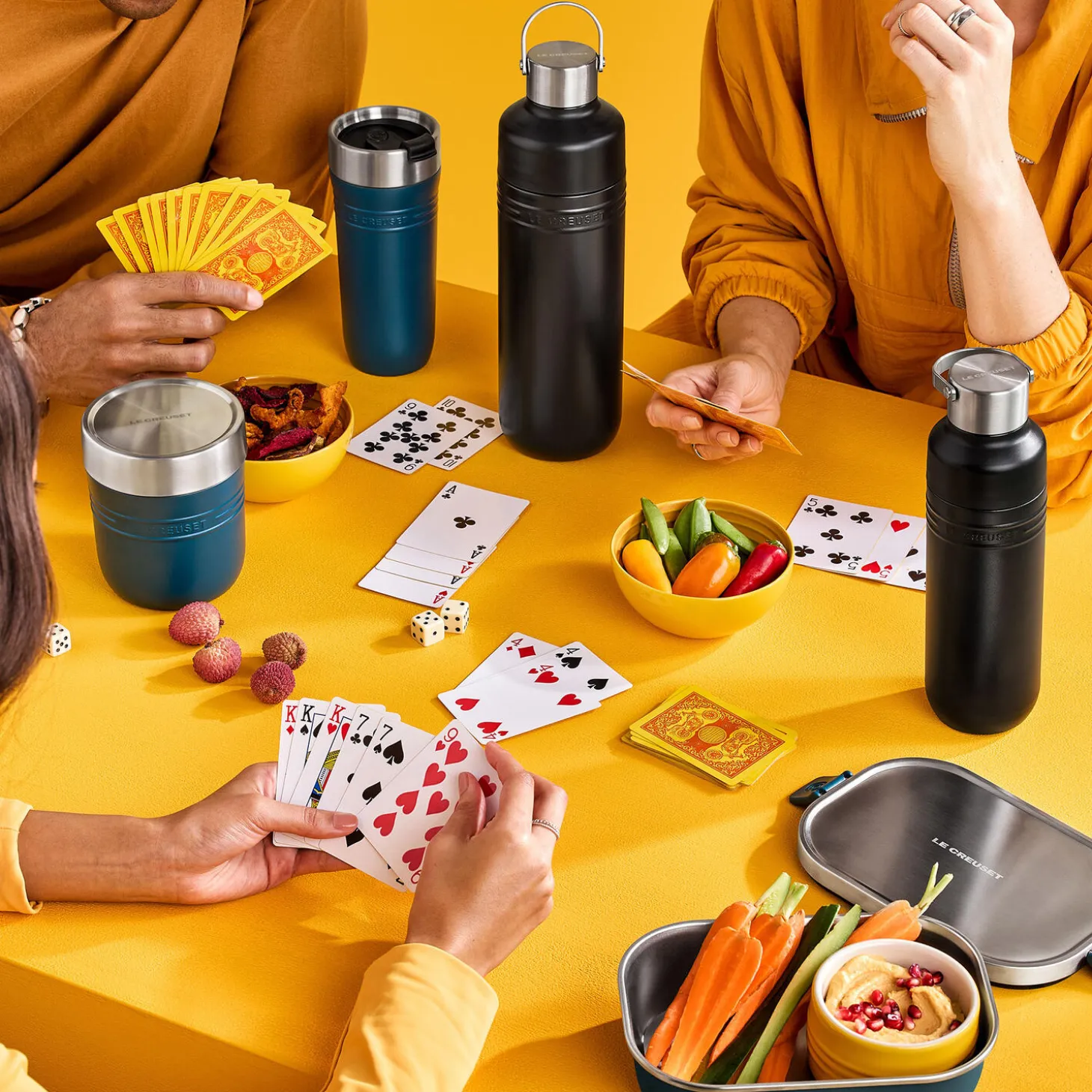 Introducerer den nye On the Go-kollektion fra Le Creuset – en smart, farverig og genanvendelig serie af bærbare beholdere til mad- og drikkevarer, designet til at følge dig hvor som helst, når som helst. Den isolerede vandflaske fra Le Creuset On the Go-kollektionen er skabt med fokus på komfort og har en smal åbning i toppen for nem drikning samt en større åbning, der sikrer problemfri påfyldning og rengøring. Låget fungerer samtidig som en indbygget kop, der forbedrer din drikkeoplevelse. Takket være den dobbeltvæggede vakuumisolering holder dine drikkevarer sig varme eller kolde i flere timer. Den holdbare, farverige overfladebehandling er ridsefast og bevarer sit ikoniske udseende, mens den generøse kapacitet på 1liter og det stilfulde design passer til enhver udflugt. Flasken er udstyret med tætsluttende låg, der forhindrer spild, og er fremstillet i rustfrit stål, der er hygiejnisk og nemt at rengøre – din farverige ledsager. Disse genanvendelige produkter er ikke kun skånsomme mod miljøet, men kommer også i Le Creusets ikoniske farvepalet for en tidløs følelse. Gør dig klar til at bringe farver i din hverdag – uanset om du skal på picnic, vandretur eller blot pendler til arbejde. Med holdbare overfladebehandlinger, lækagesikre låg og overflader, der er lette at holde rene, tilbyder kollektionen maksimal komfort og brugervenlighed. Med On the Go kan du opleve friheden ved at have Le Creusets velkendte kvalitet med dig, uanset hvor din dag bringer dig.