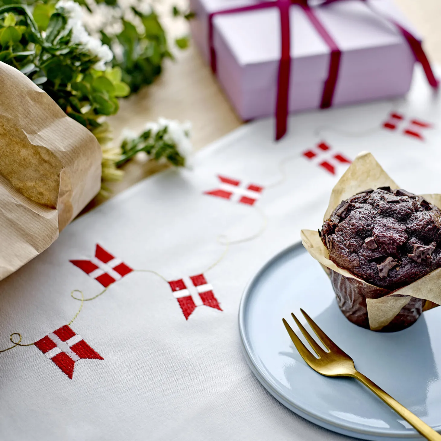 Skab en festlig stemning med vores broderede dug, Tillykke! Dugen prydes smukt af Dannebrog og delikate margueritter, også kendt som Daisies. Dette design er skabt til at bringe glæde og fejring til enhver lejlighed. Tillykke-designet er ideelt til at skabe en hyggelig atmosfære ved festlige lejligheder, uanset om det er til fødselsdage, jubilæer eller andre glædelige begivenhederVi tilbyder Tillykke-designet både som dug og dækkeserviet, så du kan skabe den perfekte festlige borddækning. Lad Dannebrog og margueritter danne baggrunden til dine særlige øjeblikke. Fejr med stil – Tillykke er broderet luksus til dit festbord!