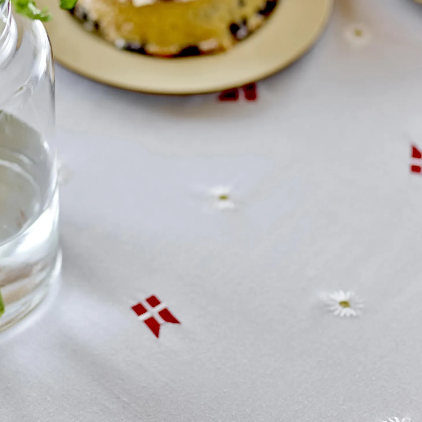 Skab en festlig stemning med vores broderede dug, Tillykke! Dugen prydes smukt af Dannebrog og delikate margueritter, også kendt som Daisies. Dette design er skabt til at bringe glæde og fejring til enhver lejlighed. Tillykke-designet er ideelt til at skabe en hyggelig atmosfære ved festlige lejligheder, uanset om det er til fødselsdage, jubilæer eller andre glædelige begivenhederVi tilbyder Tillykke-designet både som dug og dækkeserviet, så du kan skabe den perfekte festlige borddækning. Lad Dannebrog og margueritter danne baggrunden til dine særlige øjeblikke. Fejr med stil – Tillykke er broderet luksus til dit festbord!