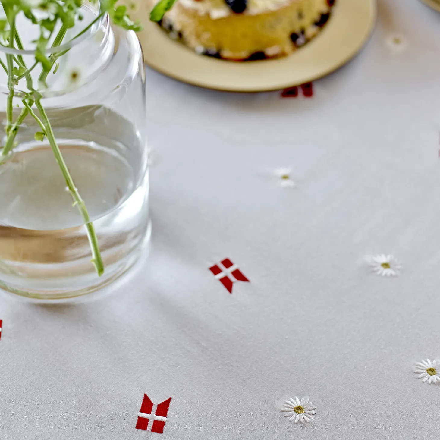 Skab en festlig stemning med vores broderede dug, Tillykke! Dugen prydes smukt af Dannebrog og delikate margueritter, også kendt som Daisies. Dette design er skabt til at bringe glæde og fejring til enhver lejlighed. Tillykke-designet er ideelt til at skabe en hyggelig atmosfære ved festlige lejligheder, uanset om det er til fødselsdage, jubilæer eller andre glædelige begivenhederVi tilbyder Tillykke-designet både som dug og dækkeserviet, så du kan skabe den perfekte festlige borddækning. Lad Dannebrog og margueritter danne baggrunden til dine særlige øjeblikke. Fejr med stil – Tillykke er broderet luksus til dit festbord!