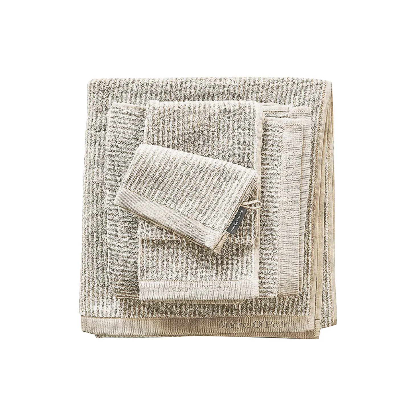 Timeless Tone Stripe håndklæde i 100% bomuldsfrotté fra Marc O’Polo. Farve: beige/white.