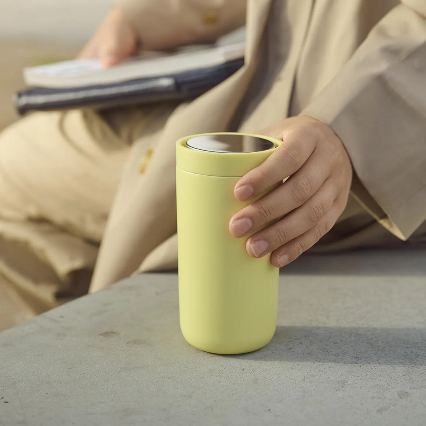 Ved at medbringe din genanvendelige To Go Click termokop hjælper du med at passe på miljøet og undgå engangskopper. To Go Click er det ideelle rejsekrus, uanset om du pendler til arbejde eller studie, går tur med vennerne eller barnevognen, eller bare er på farten. Denne To Go Click termokop på 0,4 liter i stål kombinerer smart design med høj funktionalitet. Kruset kan nemt betjenes med én hånd via et enkelt klik på toppen, som gør det muligt at drikke fra alle sider af kruset. Tryk igen, og To Go Click er sikkert lukket.