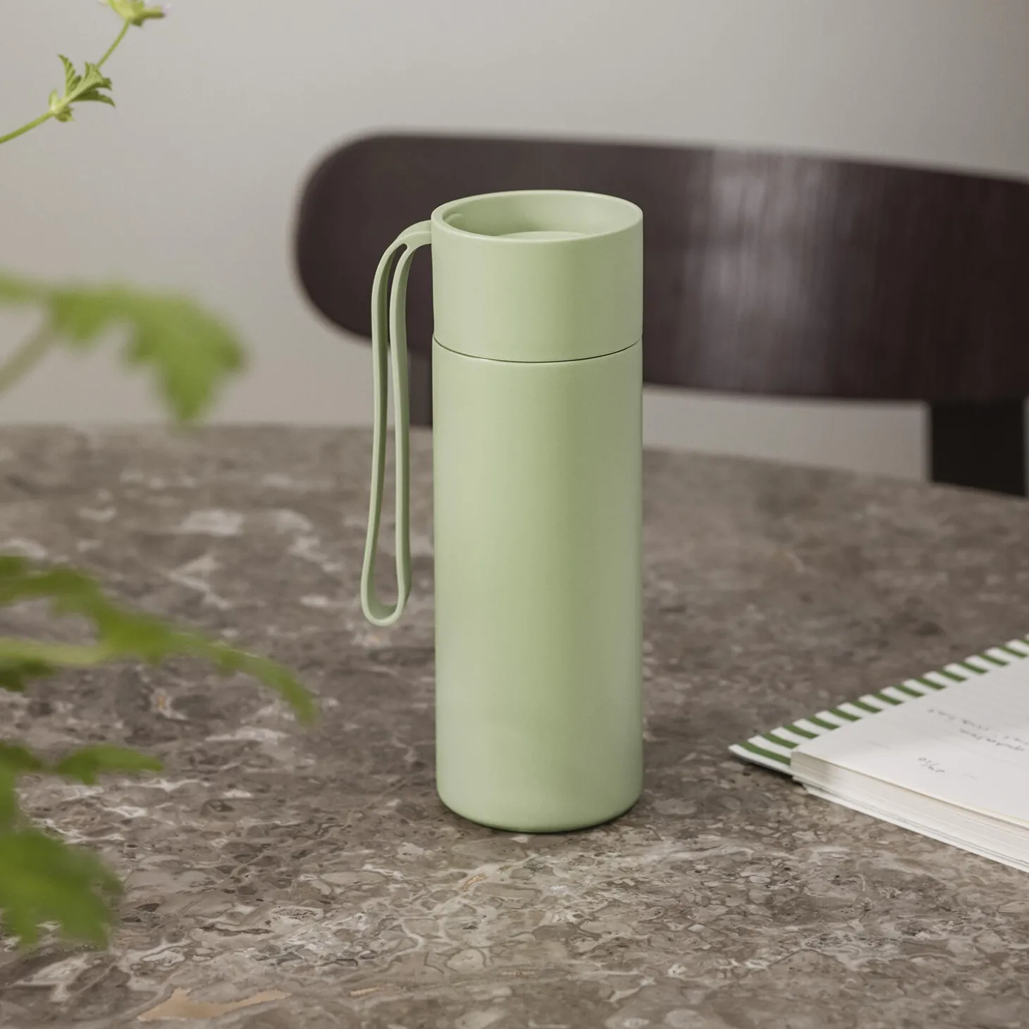 Den praktiske termokop, To Go Cup, kan tages med overalt. Låget er let at åbne og lukke på farten takket være det funktionelle låg med klik-funktion, der let kan betjenes med én hånd. Fyld To Go Cup med kaffe eller anden drik – den holder perfekt på varmen i op til 6 timer eller kulden i op til 12 timer, da den er dobbeltvægget med vakuum-effekt. Den praktiske bærestrop af silikone gør det nemt at transportere flasken rundt, så man altid har noget at drikke lige ved hånden. 5 års garanti mod fabrikationsfejl.