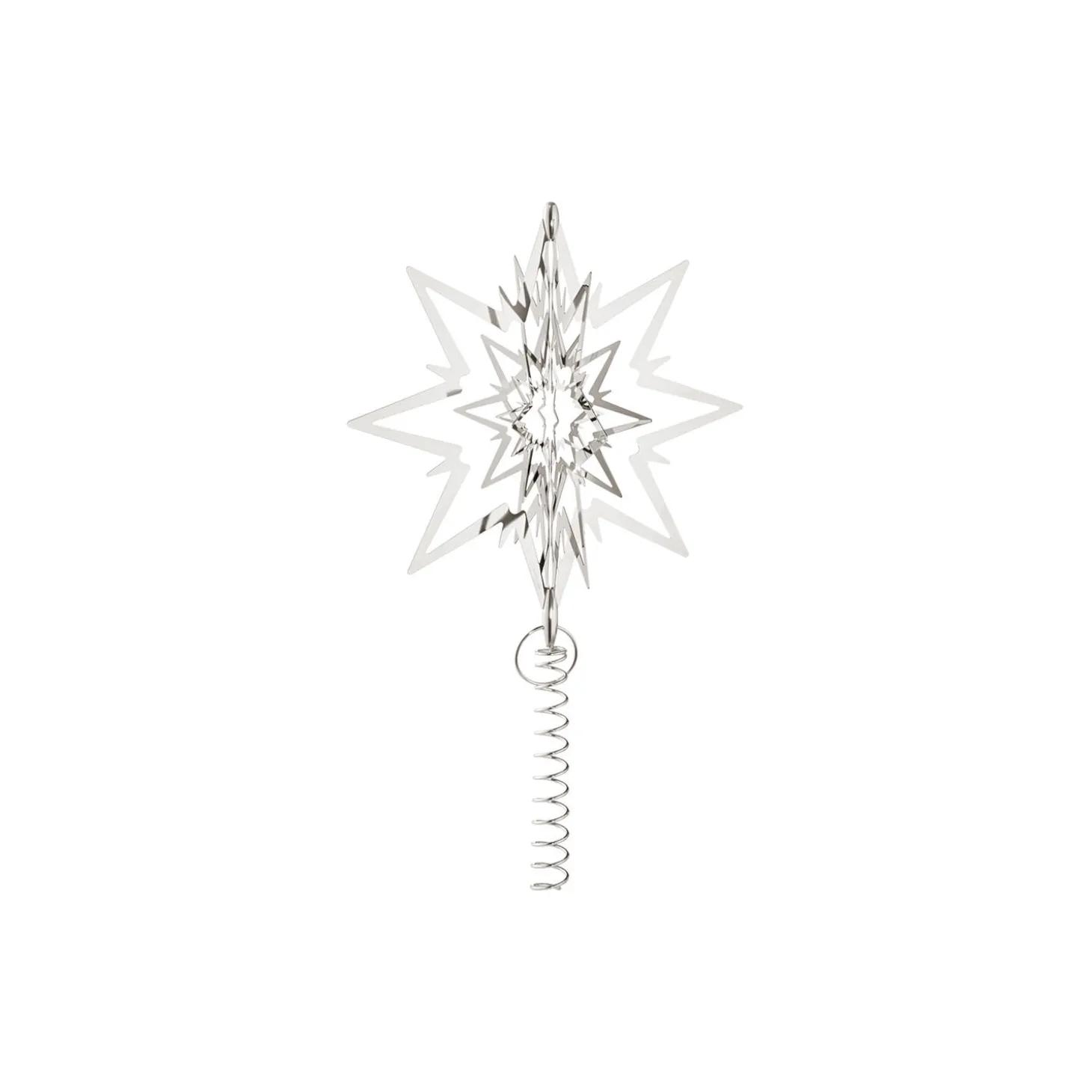 I rigtig mange familier er juletræet den allervigtigste af alle de rituelle dekorationer, der gør højtiden til noget ganske særligt. Og pyntningen af træet er ofte en begivenhed, som både børn og voksne elsker. Nu kan du krone granen på smukkeste vis med en juletræsstjerne, der reflekterer de mange stearinlys på grenene og glimter som et lille stjerneskud. Start din egen tradition med julestjernen, der er skabt til et langt liv i selskab med alle familiens generationer. Topstjernen er skabt af Fleming Eskilden, der har en lang historik som designer for Georg Jensen. Stjernen har både rødder i den hæderkronede tradition for julepynt og i den skandinaviske modernisme. Stjernen er lavet af palladiumbelagt messing og fæstnet på en fjederbase, så den er let at sætte på toppen. Den kommer med et rødt silkebånd, så den kan også sagtens hænge fra grenene som et kræmmerhus eller et julehjerte.