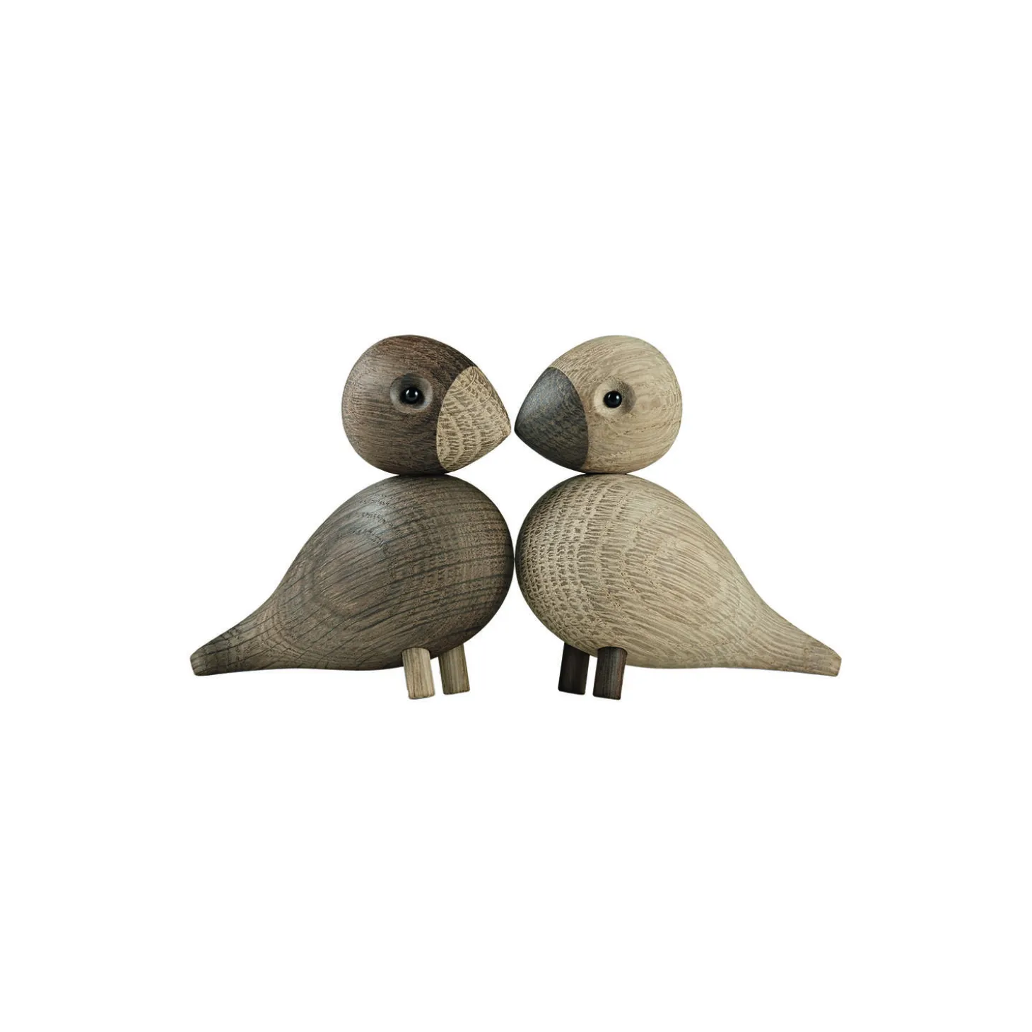 Kay Bojesens univers af træfigurer, har fået et par nye familiemedlemmer. De er mere turtelduer end de er flyvske, som de står der næb mod næb. Dekorative på både skrivebordet og i vindueskarmen, som en lille påmindelse om kærlighed. Det forelskede par er en oplagt gaveide til bryllupper og til alle, som holder af dansk design. Giv en gave, der holder livet igennem.