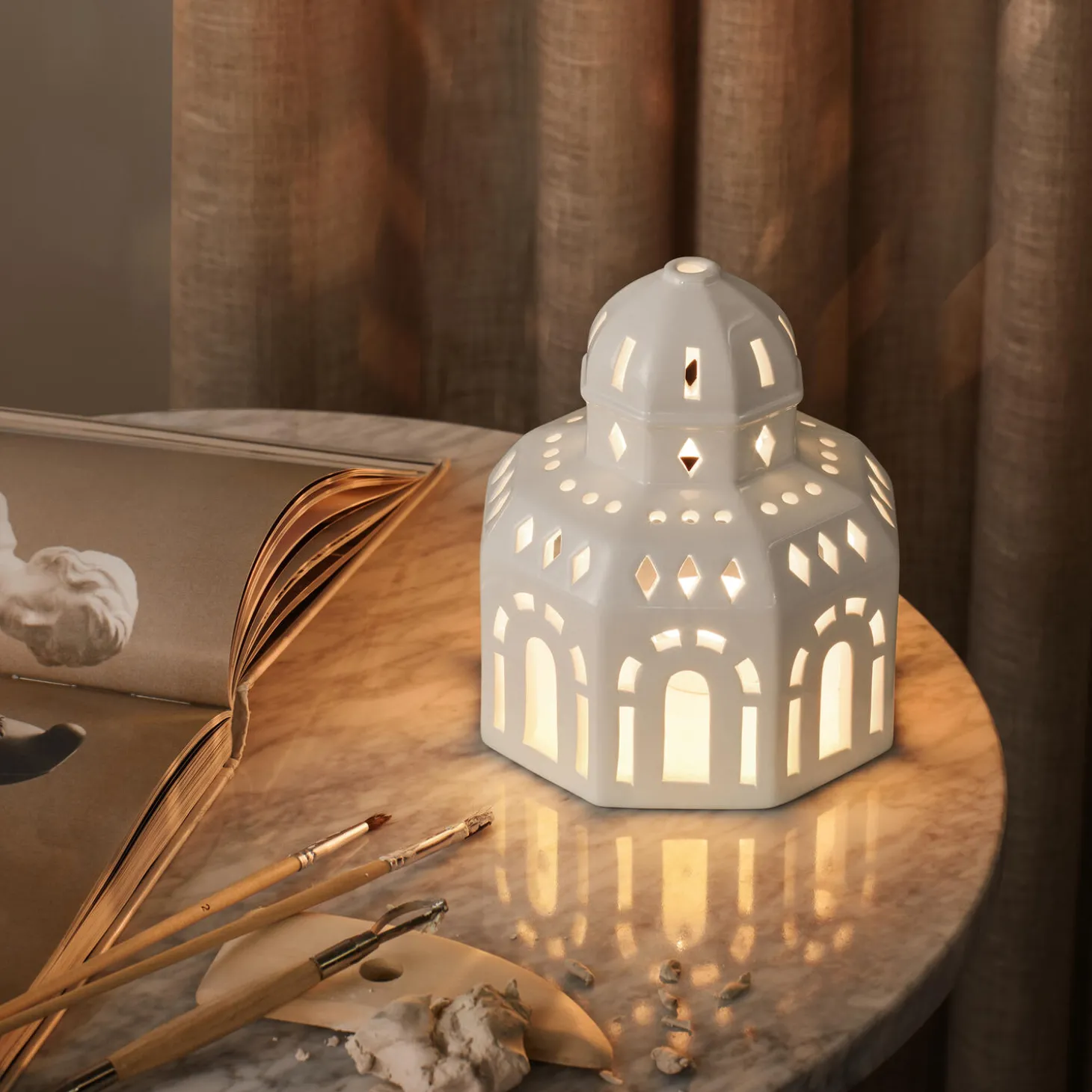Urbania lyshuset er inspireret af traditionel julepynt, men skaber hyggestemning på alle tider af året. Med deres enkle og poetiske formsprog passer de smukt ind i et moderne hjem. Udtrykket er moderne, men har samtidig noget trygt og genkendeligt over sig. Lyshusene fra Kähler er produceret i blankglaseret keramik og er en moderne fortolkning af byrummet med et elegant og eksklusivt udtryk. Klassisk keramik og nordisk design spiller godt sammen i disse lyshuse. Hvert vindue er håndskåret, og gør derfor alle lyshusene fra Urbania helt unikke. I år tilføres en ny kendt bygning til Urbania lyshuse serie, og det er Tivoli´s Glassalen. Glassalen er en historisk karakteristisk ottekantet bygning i Tivoli, hvor berømtheder fra hele verden optrådt igennem tiden. Design af R7B