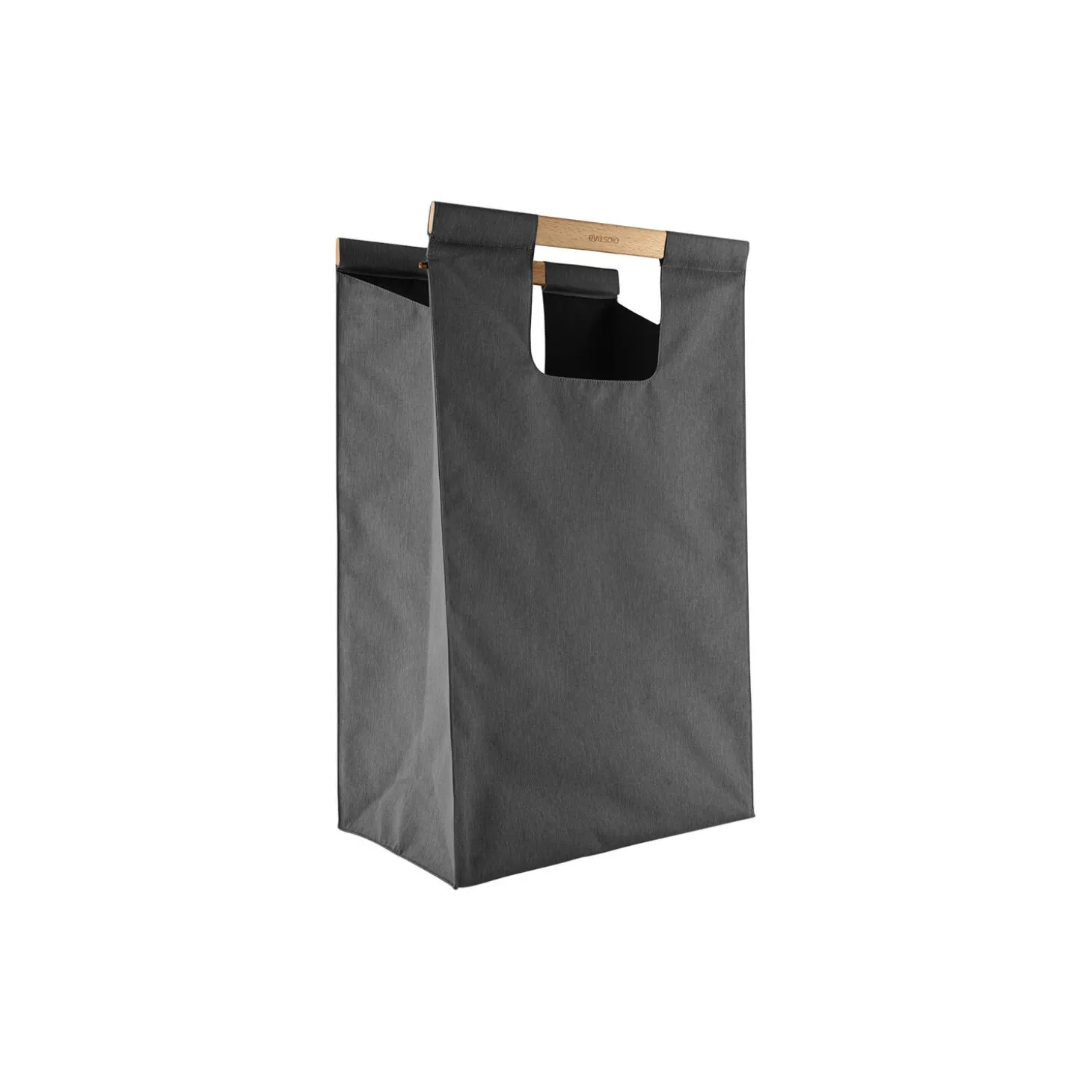 Gem vasketøjet af vejen i et snuptag med funktionel vasketøjskurv, opbevaring og transporttaske i én. Den dekorative vasketøjspose i delikat grå farve har en praktisk bærehank i bøgetræ, så posen nemt kan tages med, for eksempel i vaskekælderen, lukkes nemt med magnet og står stabilt uden at falde sammen. Nem at rengøre. Aftør blot nylonforet med en opvredet klud og vedligehold håndtag i bøg med jævnlig oliering.