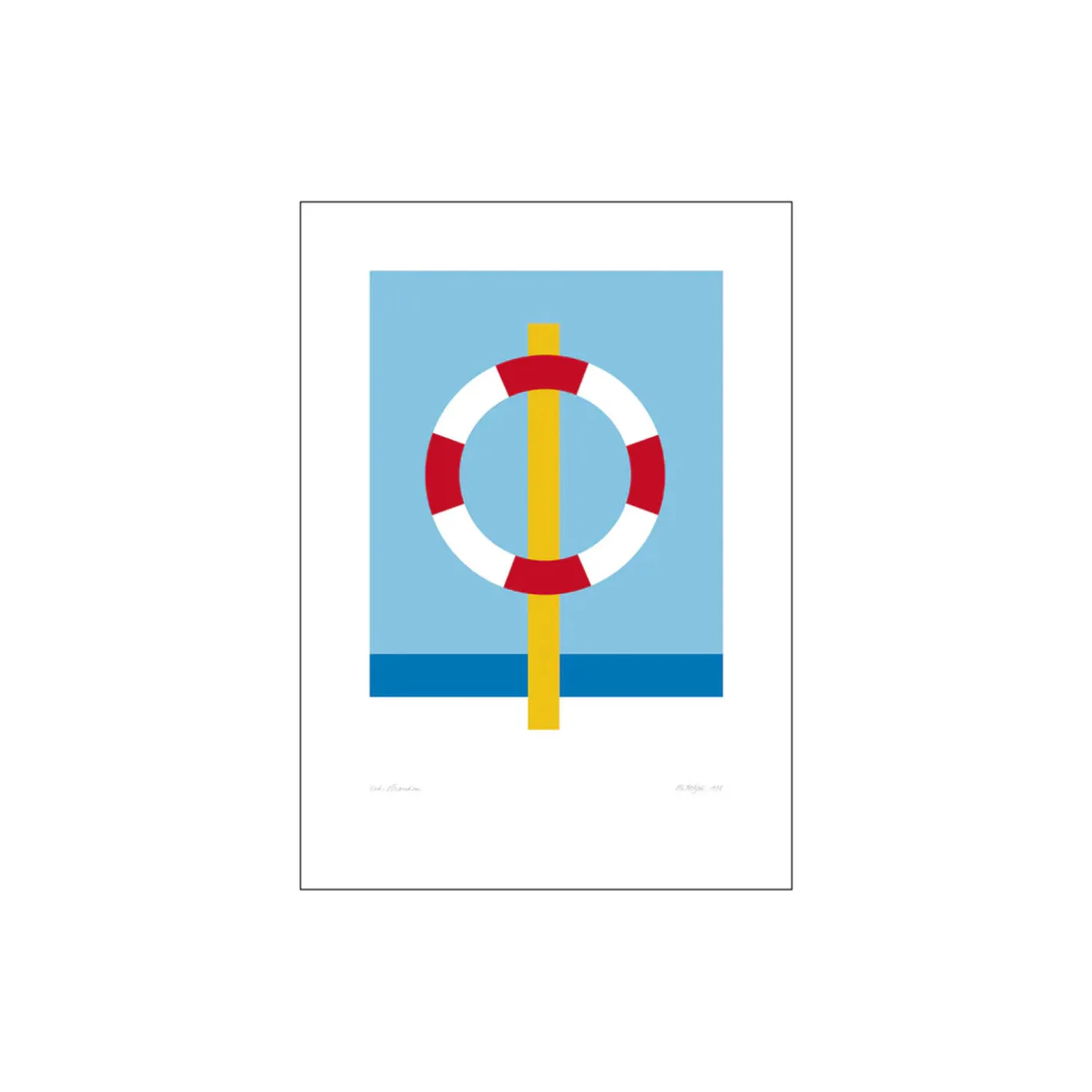 Kunstplakaten er en reproduktion af det originale kunstværk Ved stranden, som blev serigrafitrykt i 1978. Redningen er nær, også ved havet.