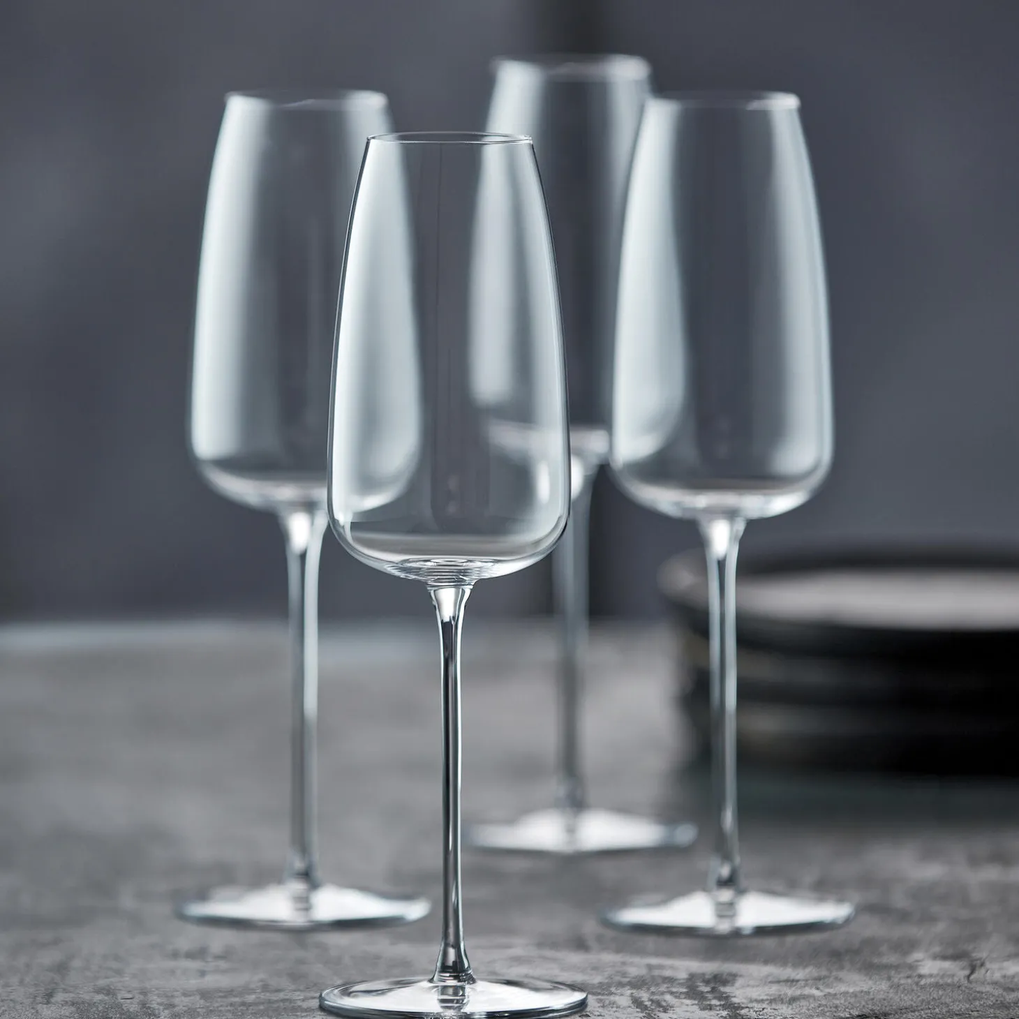 Giv dine gæster en eksklusiv oplevelse med smukke og lette champagneglas, som er designet med en slank stilk, der giver en enestående fornemmelse, når man holder glasset i hånden. Glasset har desuden en tynd kant, som gør smagsoplevelsen særdeles behagelig for vinsmageren, og kombineret med glassets dejlige lethed, bliver der skabt en perfekt balance mellem funktionalitet og skønhed. Det elegante Veneto design tilfører et strejf af elegance til din borddækning. Velegnet til festlige anledninger eller til en afslappet aften med vennerne. Tåler opvaskemaskine og er modstandsdygtig overfor ridser og stød. Opvaskeprogram på maks. 55 °C anbefales.