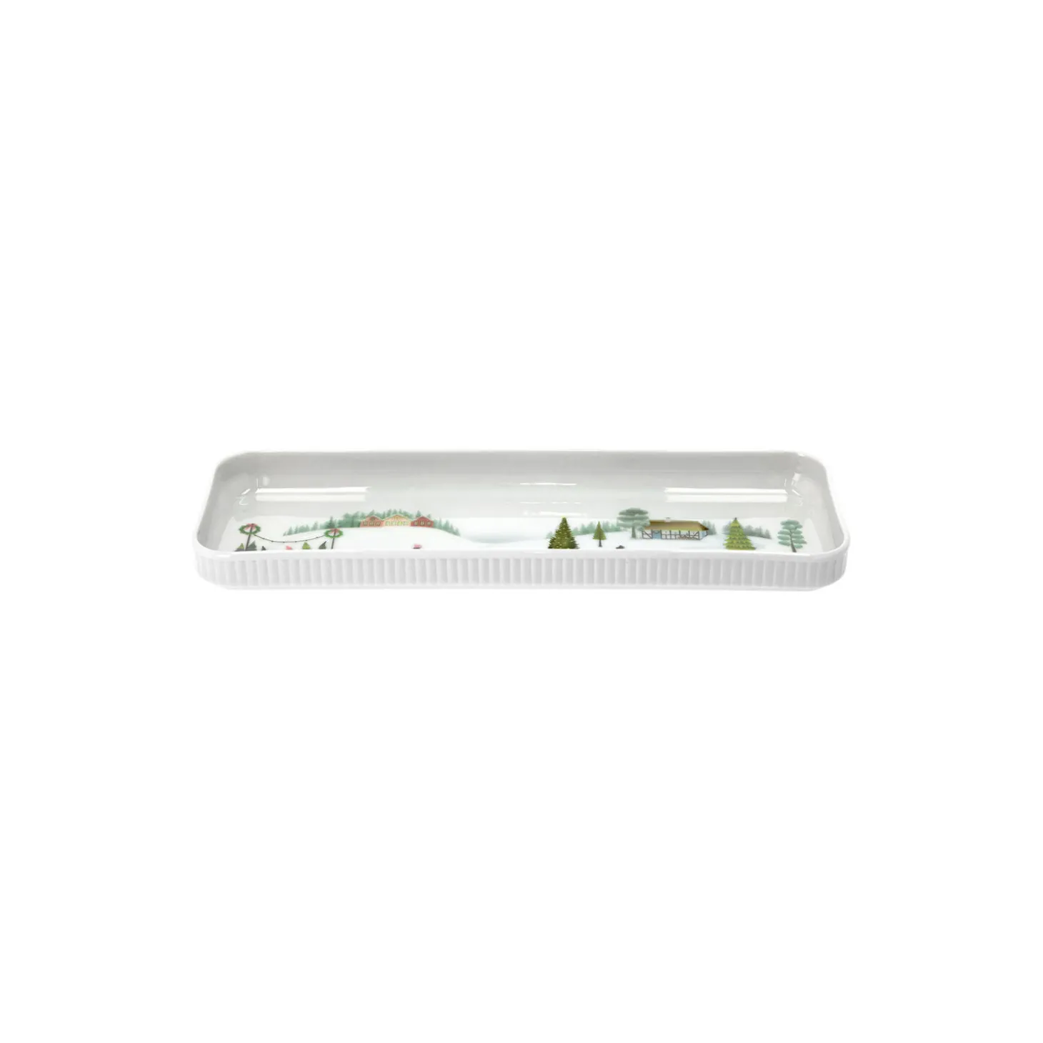 Vinter er Pillivuyts hyggelige stel, som både kan bruges til smukke juleborde og andre festlige lejligheder i de kolde måneder. De rektangulære fade fra stellet Plissé med den karakteristiske, elegante plissering danner baggrund for Vinter fadene, som er dekoreret med eventyrlige vintermotiver.