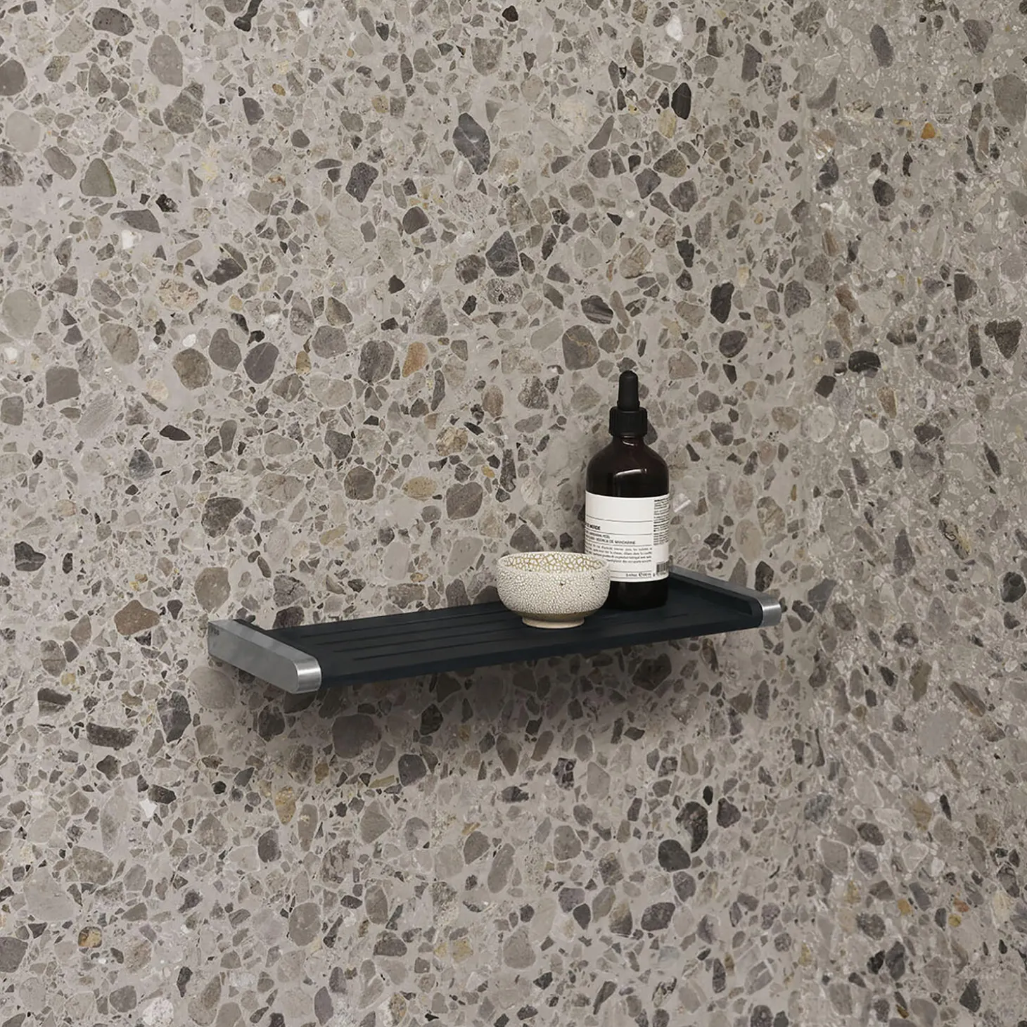 Vipp brusehylden er en funktionel tilføjelse til badeværelse og brusekabine. Syreresistente materialer beskytter brusehylden mod sæberester, og en aftagelig silikoneindsats gør hylden let at rengøre.