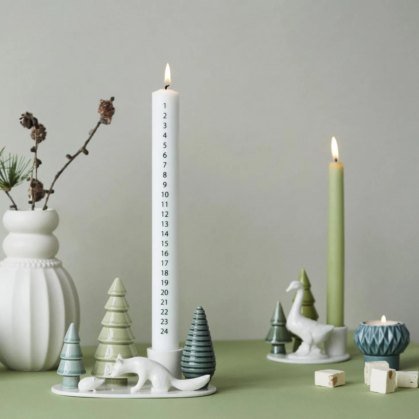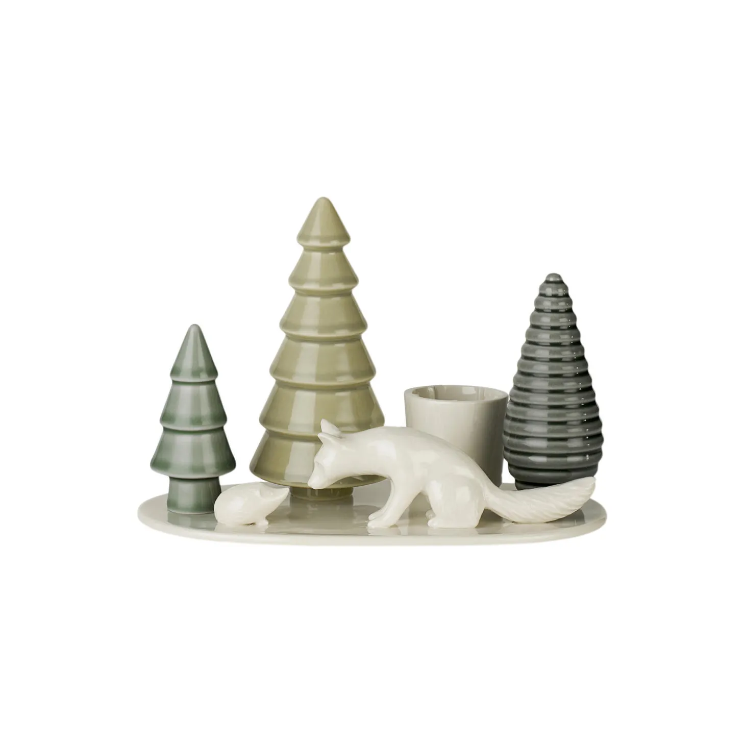 Imellem skovens træer står to af nordens dyr. En ræv og et lille pindsvins veje krydses, og de ser hinanden an i et nysgerrigt øjeblik. Winter Stories Rendez-vous passer til vores 3 cm lys.